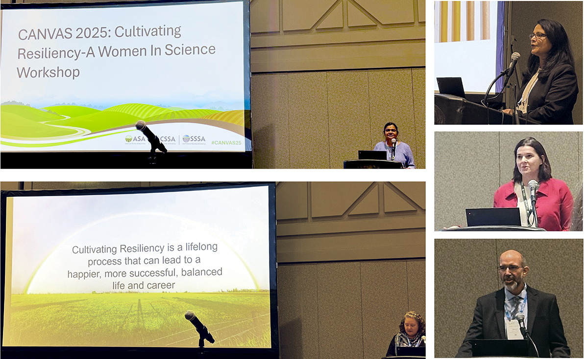 The Women in Science (WIS) Committee supports women scientists in the agronomic, crop, soil, and environmental sciences by encouraging them to achieve professional excellence, fostering mentorship and networks, and creating spaces to address issues relevant to women in these fields. The committee’s theme for 2025 was Cultivating Resiliency, and the topic was explored through multiple formats, from webinars organized throughout the year (Managing Stress, Mental Wellness, and Compassion Fatigue for Agriculturalists and Cultivating Respect in the Workspace) to a closing workshop at the 2025 CANVAS meeting. These conversations drew on perspectives shaped by varied career paths with an intentional focus on resiliency across career stages, roles, and lived experiences.