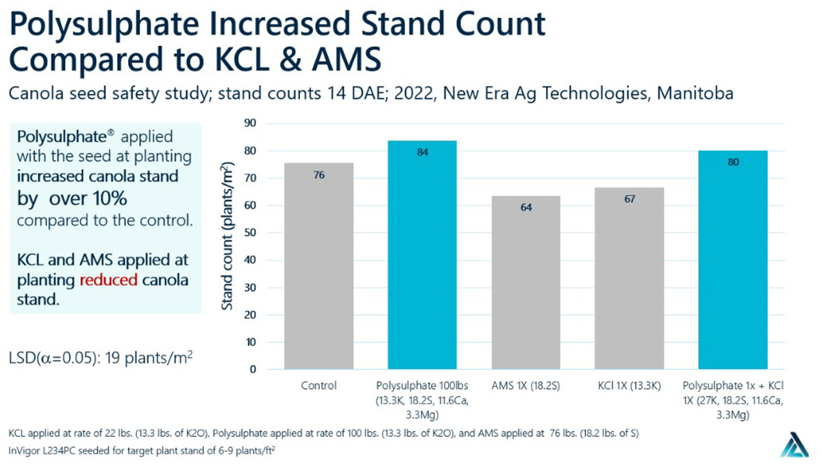 Polyhalite has been associated with improvements in early emergence and plant stand in certain cropping systems. While responses are environment dependent, contributing mechanisms may include: