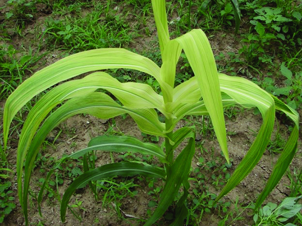 Large genetic differences exist among cultivars tolerant of low-iron conditions, and a variety change can be effective for dealing with challenging soil conditions (Goos and Johnson, 2000; Hansen et al., 2003; Cakmak et al., 2010). Local screenings of hybrids and varieties by universities and crop breeders can identify which lines perform the best in low-available-iron conditions (Figure 5). Grain and forage sorghum have frequently exhibited yield loss related to iron deficiency (Clark, 1982). In Kansas, Obour et al. (2019) screened 14 grain sorghum hybrids at three rates (0, 0.18, and 0.36 lb Fe/ac) of EDDHA-chelated Fe applied at planting. The greenhouse study used a silt loam soil with a pH of 7.9, 3.1% organic matter, and DTPA extractable 5.8 lb Fe/ac. They found considerable differences in hybrid susceptibility to IDC. Grain sorghum yield has been reported to be higher with application of chelated iron fertilizer compared with no iron applied in both greenhouse (Obour et al., 2019) and field studies (Clark et al., 1988). Assessing variability of low-available-iron conditions in a field helps to target where yield loss may be mitigated and where you should expect a crops response to fertilization or not.
