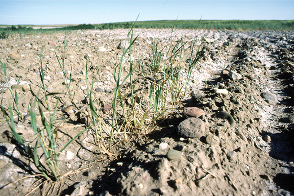 Adequate internal drainage is essential for leaching soil, thereby moving salts below crop rooting zones. If a restrictive layer such as dense clay or a cemented hard pan impedes water movement through the soil profile, salts cannot be moved beyond the rooting zone and may return as water evaporates from the soil surface.
