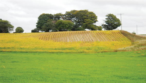 Erosion prediction knowledge can be a powerful tool to assist farmers to restore soil productivity if the parameters that affect soil and tillage erosion are planned to help increase SOM using real field data. Using field observations, yield monitor data, soil penetration resistance readings, and soil testing for the current SOM level on critical eroding slopes combined with the right sequence of conservation practices can begin healing our soils from the “top down.” However, to control ephemeral and classic gully erosion, other conservation practices like water and sediment control basins, grassed waterways, or vegetative barriers (Figure 7) need to be designed and implemented. Hence, the art and science of combining conservation planning and agronomy with engineering practices can act to restore and enhance soil health and productivity.
