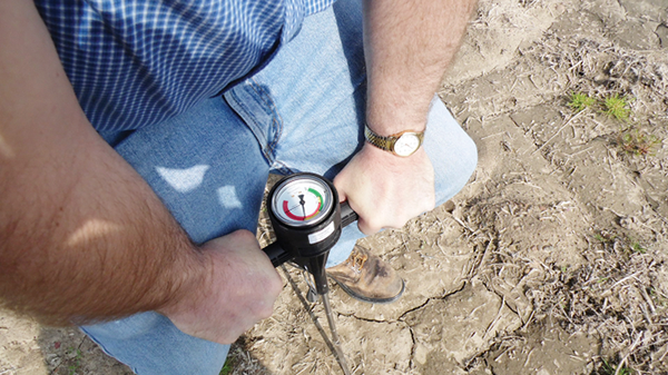 Penetrometers are an inexpensive (fixed cost) method to measure soil compaction along a soil profile. Penetration resistance (PR) of a soil profile provides a measurement of what roots, air, or water encounter, regarding soil impedance. Penetration resistance is a function of compaction, soil texture, organic matter content, and moisture content, which complicates one’s ability to compare PR measurement consistently over time and space. The ideal situation for PR is to compare side-by-side trials. Take the PR measurements on the same day and compare the treatments, but note that fields at different soil moisture contents will influence the comparison.
