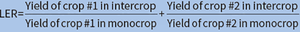 Intercropping is the practice of growing two or more crops at the same time. While putting two crops together usually means less yield for each crop, overall productivity is often increased due to complementary growth habits. A common metric for evaluating the impact of intercropping on overall productivity is the land equivalent ratio (LER), the area of land under monocrops required to produce the same yield as the intercrop: