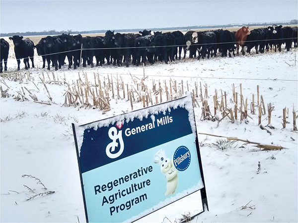 General Mills, for example, relies on oats, wheat, dairy, corn, sugar beets, and other agricultural products for the foods they produce. They set a goal to advance regenerative agriculture on one million acres of farmland by 2030, measuring impacts on five different aspects of the farm ecosystem. These measurable impacts include economic resilience in farming communities, soil health, water, biodiversity, and the well-being of dairy cattle in livestock operations.