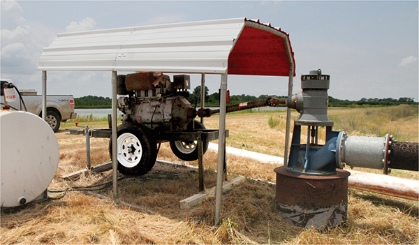 Tailwater recovery is a method to save water from each irrigation application for use in future applications, increasing efficiency and reducing overall water use. In recent years, many regions of the country have experienced drought or more intermittent rainfall than they have in the past, making such systems economically attractive as a means to conserve a scarce resource. As a result, in some regions, such as California, producers have been drawing more irrigation water from groundwater sources. Tailwater recovery works by capturing the excess water on the bottom of the slope of a field that can result from surface irrigation. That water must be conveyed away to prevent field flooding and oxygen depletion in the rhizosphere. Irrigation tailwater, like any runoff from farm fields, likely contains sediment, nutrients, and crop protectants that can enter and harm nearby water bodies. Tailwater recovery systems (TWS) collect this excess irrigation water in reservoirs and return it to the top of the field for subsequent irrigation. Therefore, TWS both conserves irrigation water and protects water quality by intercepting sediment and crop inputs as well as recycling runoff for a future irrigation, reducing the need to draw water from diminished surface or groundwater sources. Mississippi State University Cooperative Extension has a comprehensive resource on tailwater recovery systems.