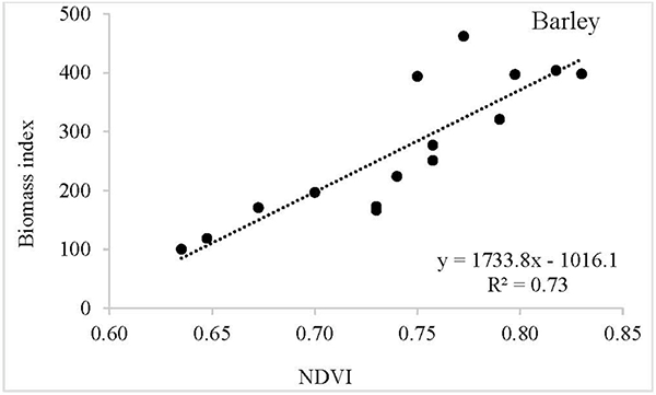 Preliminary analysis of 2021 data collected at Parma has shown that biomass production was closely related to the chlorophyll content for wheat and barley with strong relationships between the ground-based NDVI and leaf chlorophyll concentration and biomass production noted for both crops (Figures 1 and 2). This exemplifies that crop sensors perform well and can identify even very slight differences in plant health and vigor associated with nutrient application. In fact, crop sensors can help to accurately measure crop health condition and may even help to distinguish between various types of crop stress—drought, temperature, insect pests, disease pressure, and inadequate nutrition.