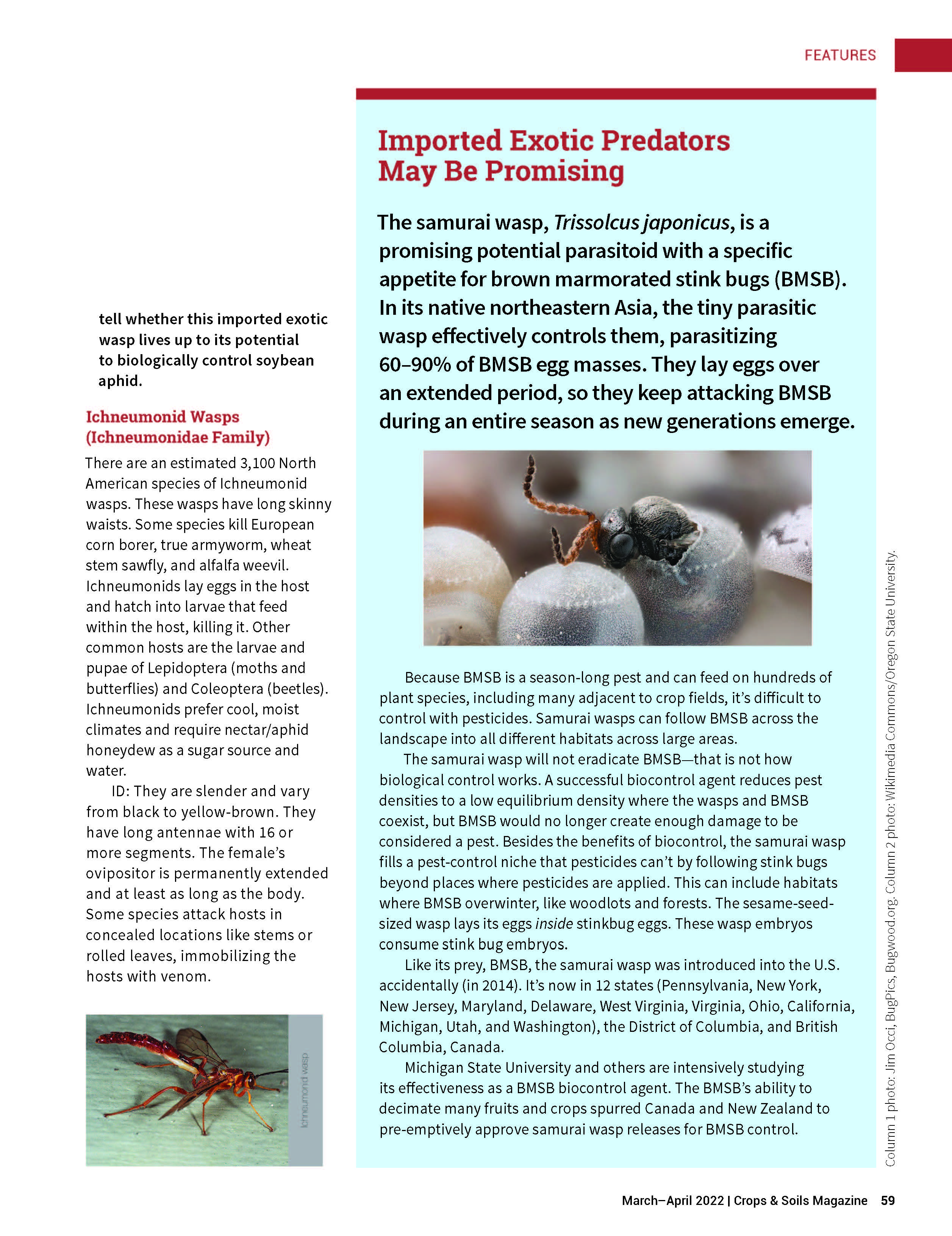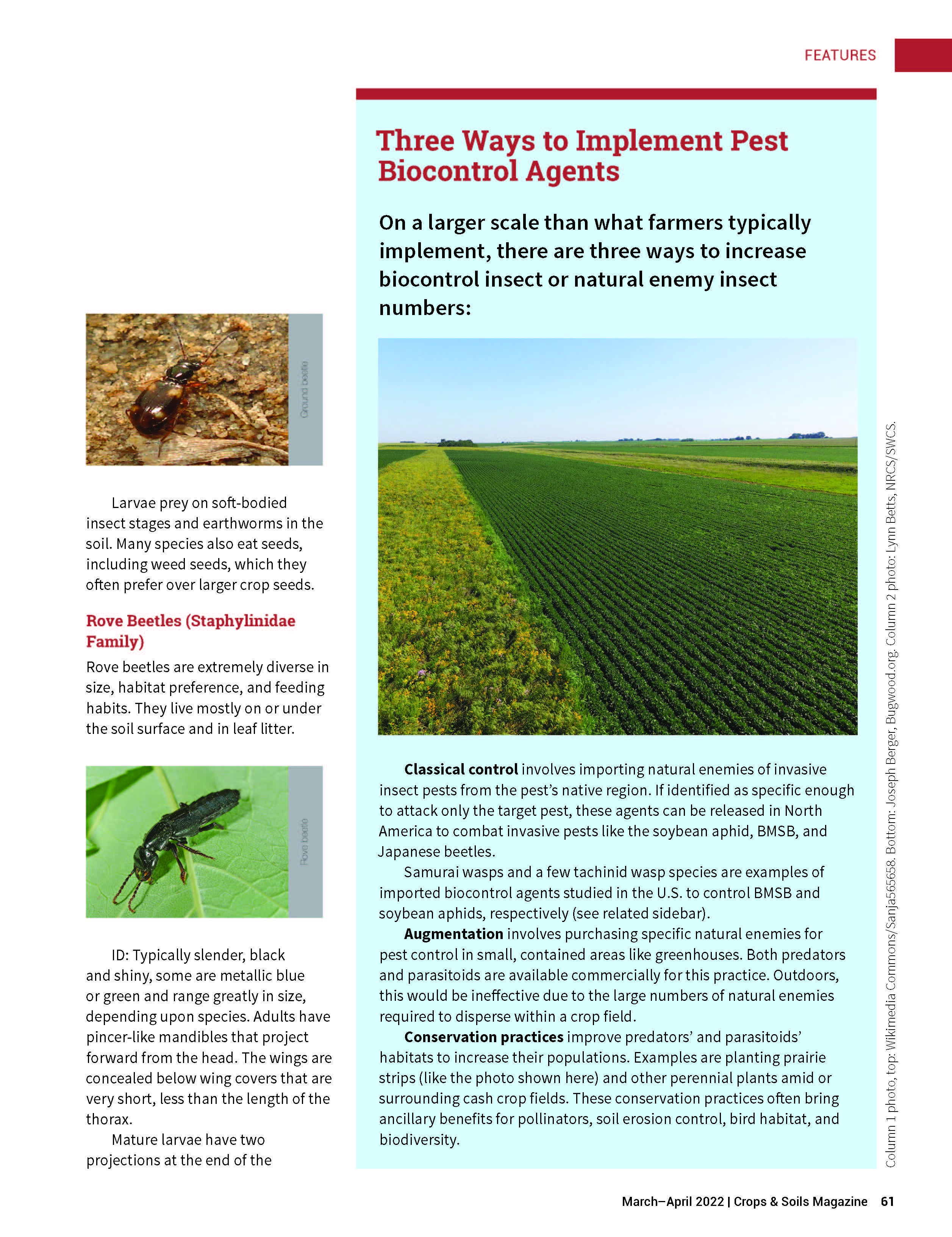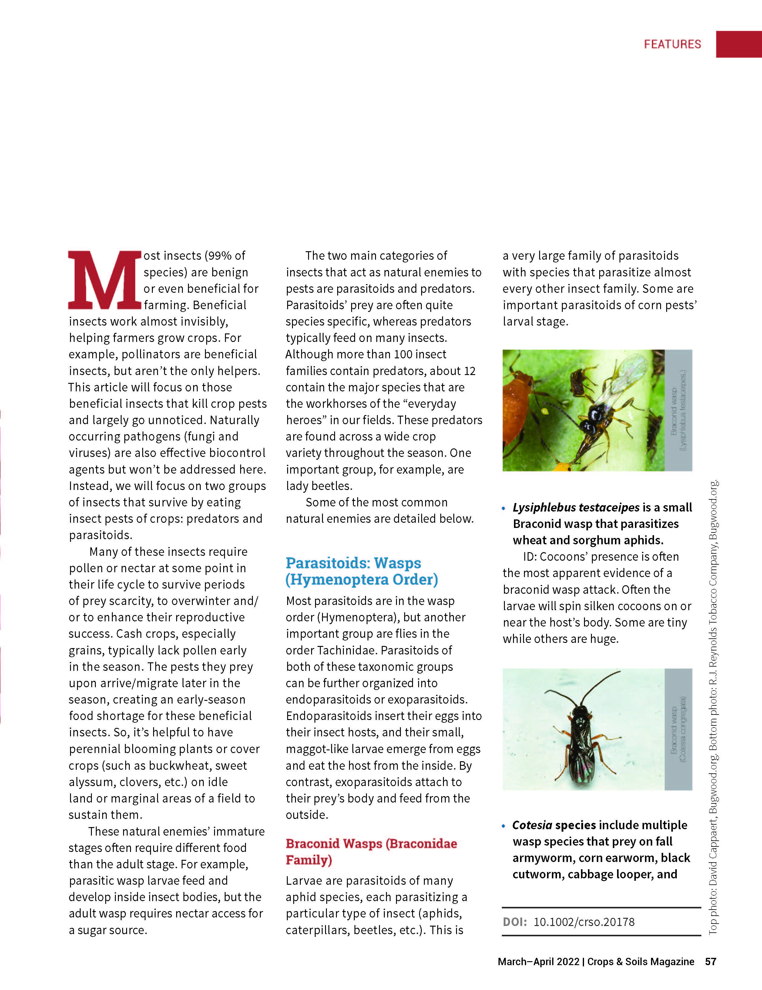 This article is the first in a three-part series on beneficial arthropods. It will highlight some beneficial insects that kill crop pests and are largely unnoticed in the Corn Belt and Great Plains. The focus will be on two groups of insects that survive by eating insect pests of crops: predators and parasitoids. Information for this article comes from the University of Illinois, Iowa State University, Kansas State University, Michigan State University, University of Minnesota, Texas A&M University, and Utah State University.
