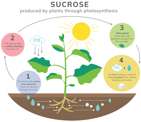 Nature manufactures “sugar” or sucrose daily through the process of photosynthesis. It’s a simple, yet complex miracle that happens all around us. Plants use chlorophyll to absorb energy from sunlight and combine carbon dioxide from the atmosphere and water from the soil to create a hydrated (water) carbon molecule known as a “carbohydrate.” A small, but extremely important side benefit of photosynthesis is the release of oxygen (O2) back to the atmosphere.