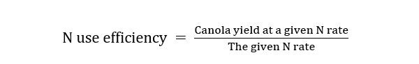 b. N applied at a given rate ÷ Canola yield at the given N rate.
