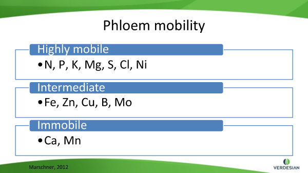 We must also understand nutrient mobility in plant tissues like the leaf. Figure 2 shows the mobility of various nutrients.