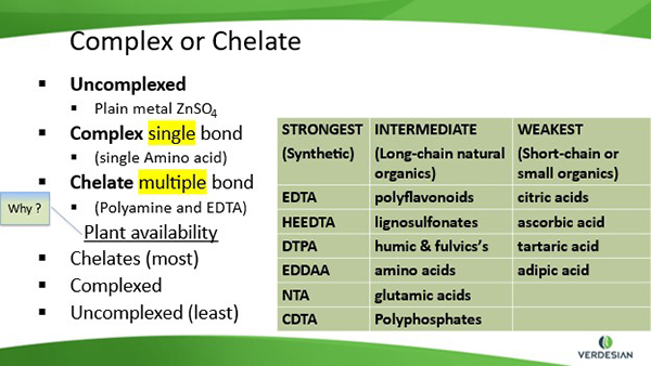 Molecular weight plays a role in the complex or chelated products as does the charge of the molecule. Measured in Daltons, see some of the differences listed below. Remember both the size and the charge can limit complex or chelated product efficiency to enter the plant.
