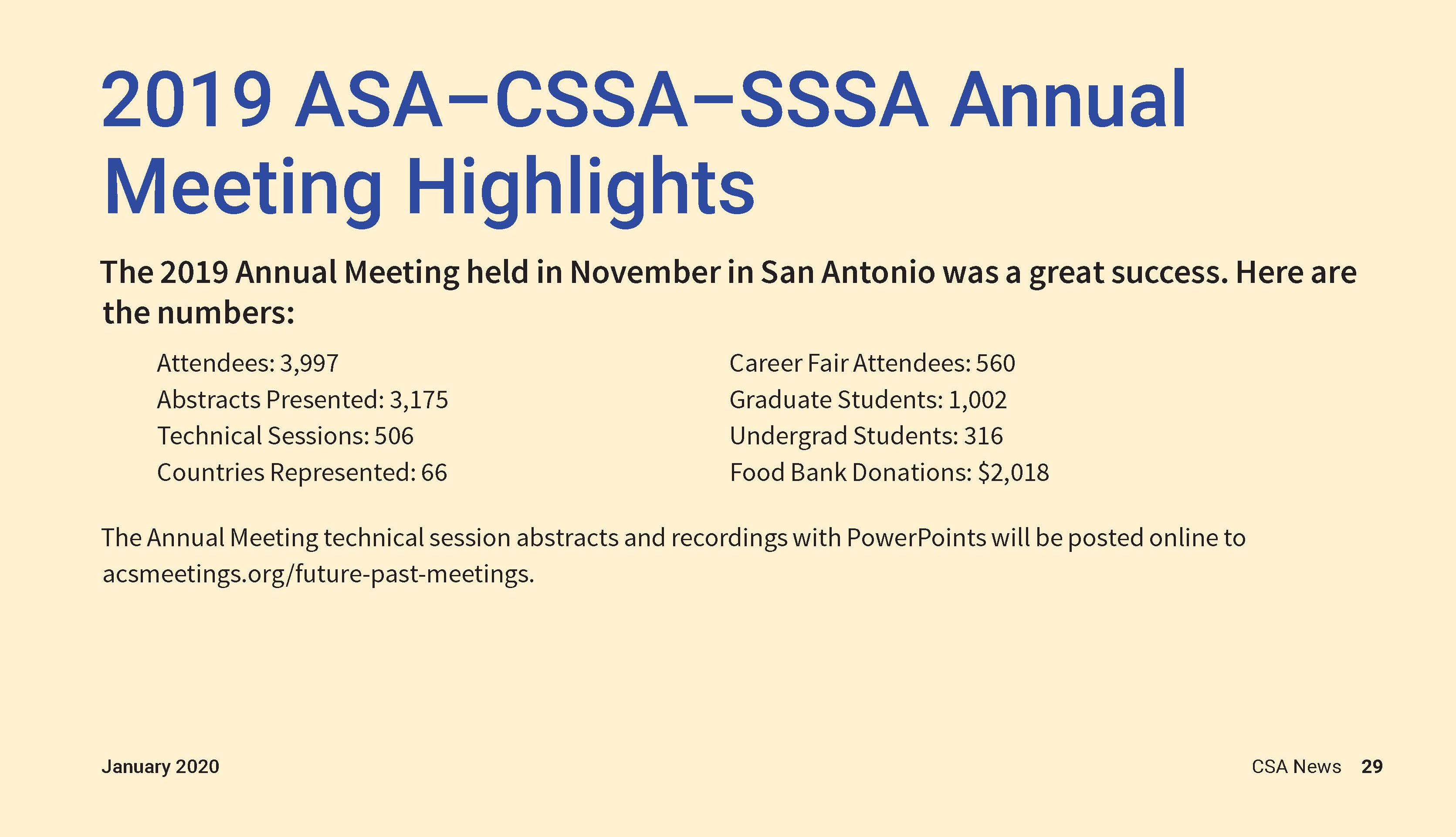 2019 ASA–CSSA–SSSA Annual Meeting highlights