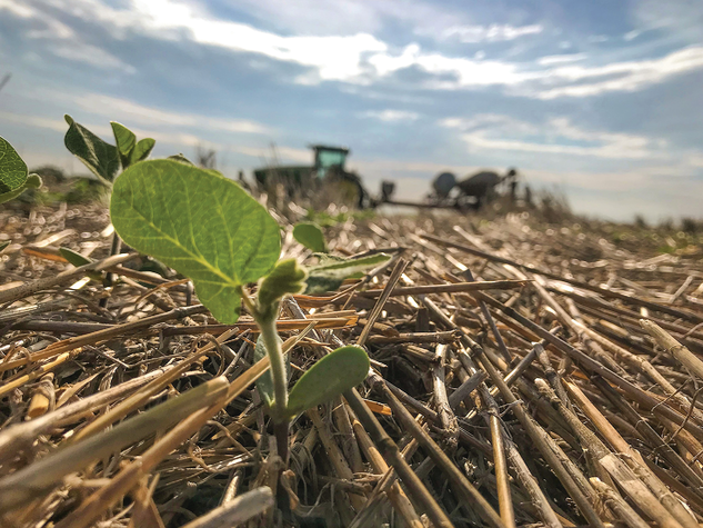 Comfortably situated within the cover of last year’s wheat straw, this soybean emerges. Agronomic advances such as no-till create sustainable solutions to feeding the ever-increasing world population.