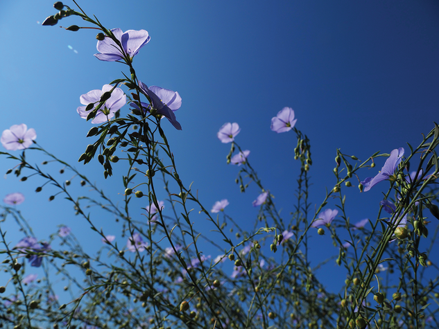 The flowers of perennial flax are strongly heliotropic, tracking the sun throughout the day and attracting pollinators with their vibrant blue petals. Breeders at the University of Minnesota are working to develop ornamental and agronomic varieties that have additional ecosystem benefits, such as soil stabilization and pollinator services.