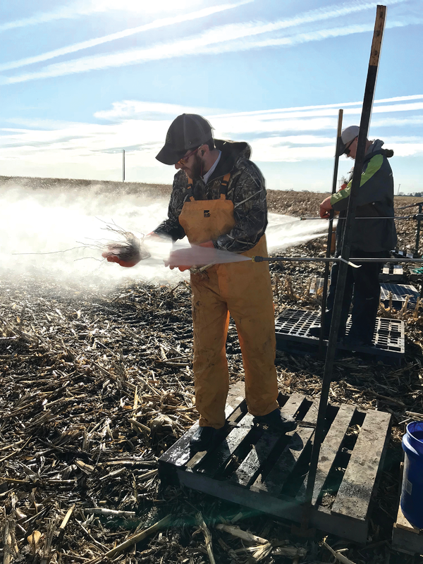Researching the effects of different management factors on the physiological growth of corn roots is a dirty job. Sampling and power washing more than 1,500 corn roots not only taught the students about the physiology of corn roots, but also how to get mud stains out of their clothes.