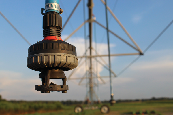 This picture depicts one of the nozzles of a central-pivot irrigation system. Invented in late 1940 by a Nebraska farmer, central-pivot irrigation has changed the agricultural landscape of the country. This innovative technology is capable of sustaining crops even on dry barren lands.