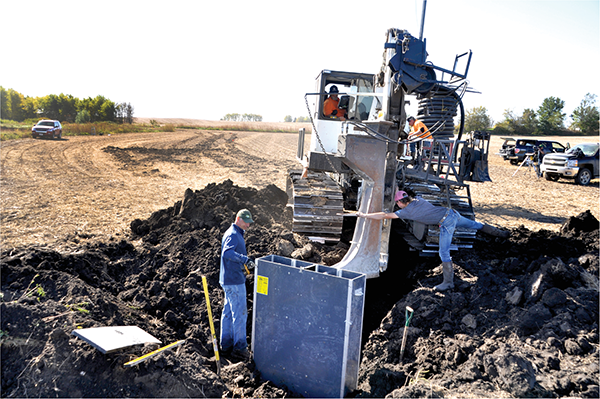 Probably the largest single barrier to adoption, though, is cost. Although several studies have suggested that the cost of installing one of these systems is similar to other edge-of-field conservation practices—on the order of US$2.94 kg−1 nitrogen removed—it’s still something that brings little to no return on investment for farmers. So to be economically viable, farmers usually have to seek out alternative funding—which is out there, Simonson says. She notes that SRBs and other edge-of-field conservation practices are basically altruistic practices. Being willing to undertake the effort to seek out funding partners, find and hire a design and engineering firm, and rip up their fields to install these belowground structures all for little tangible return on investment is “truly an extension of a producer’s ethos, available resources, and knowledge—it’s a combo platter,” Simonson says. And many farmers have already taken actions to address the nitrate issue, so they don’t feel like they need to do more, she adds.