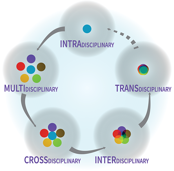 This interest in solving the most pressing issues facing society is something that requires collaboration. Transdisciplinary research is the final step in the collaborative process, moving from work within a discipline—intradisciplinary, basic research—through stages of cooperation with other disciplines. It integrates viewpoints and problem-solving perspectives from multiple disciplines, including nonacademic stakeholders like politicians and community members (see Figure 1).