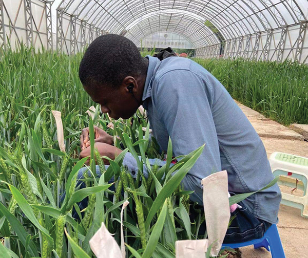 Wheat emasculation is carried out to cross-pollinate with the desired pollens from another wheat variety that possesses desired traits.