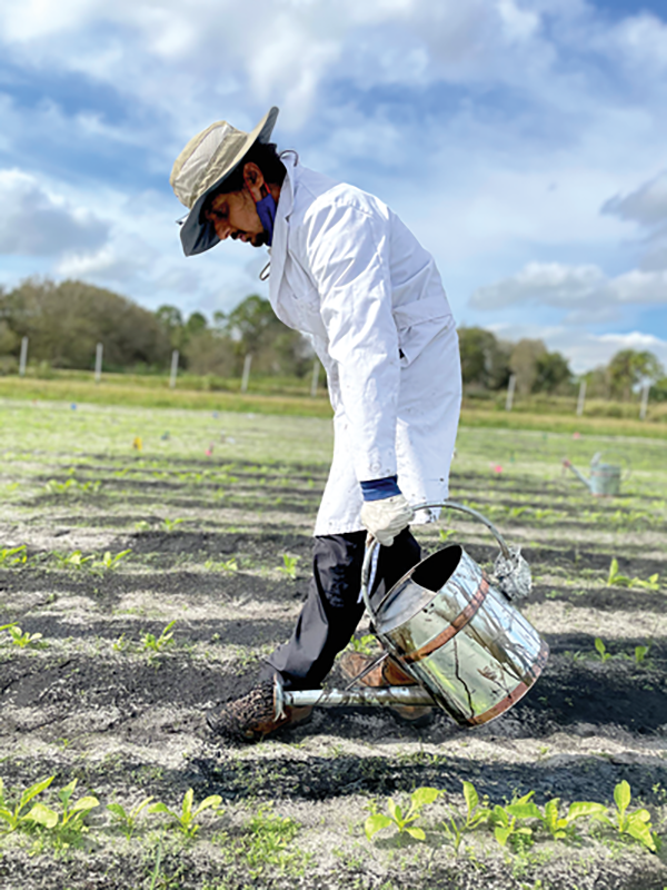 Science has evolved, and new tools have made farming easier. However, a good old manual method is often the most suitable method for experiments when we must precisely apply treatments. This is me—topdressing nanocarbon (CNM) to beets—as I evaluate CNM effect on crop, soil, and the environment.