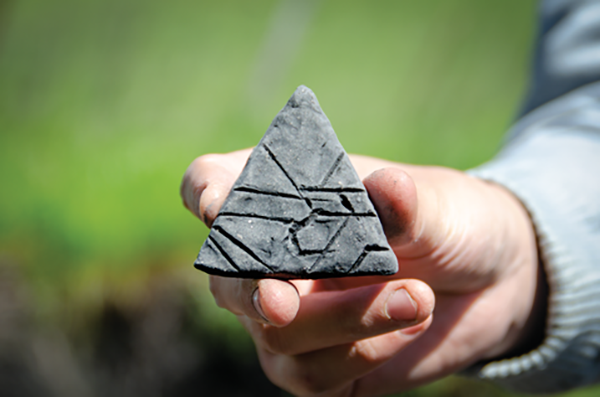 The soil texture triangle is a tool for determining the percentage of sand, silt, and clay in a soil sample. One of my students made his very own texture triangle out of a soil sample and then used the triangle to determine that the soil was more than 60% clay!