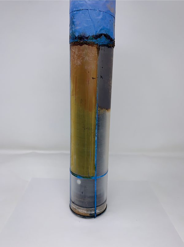 Once Knappenberger created these binary images, it was time to see iron and manganese reduction on an hour-by-hour basis. In fact, they found that manganese-reducing conditions were present after about eight hours at the earliest in their mesocosm. At the latest, the team found that 30% reduction and removal of paint was reached after 13.4 days at the very latest. Knappenberger even created an animation showing reduction status by the hour.