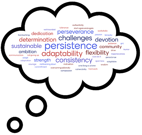 Other words included adaptability, challenges, consistency, determination, and flexibility. These reflect a traditional view of resilience: endurance and survival.
