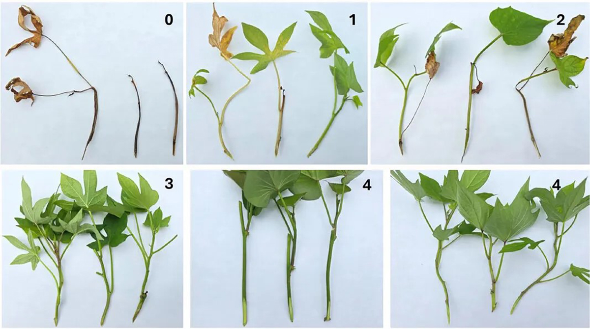 The segregating population (454 progenies) from susceptible parent ‘NCDM04-0001’ x resistant parent 'Covington' was used by NC State researchers in greenhouse bioassays in three to four replicates across three trials. Progenies and checks were evaluated using a 0–4 scale, where 0 = dead and 4 = asymptomatic. Including relevant experimental parameters, Best Linear Unbiased Estimates (BLUEs) were calculated; across progenies, the adjusted mean resistance was 2.02 ± 0.69, where scores of 2–4 span moderately to highly resistant.