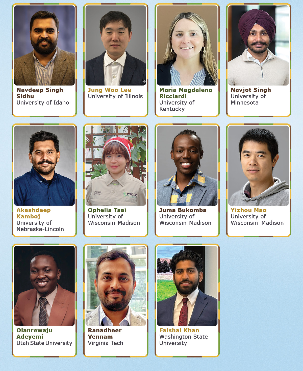 Congratulations to the students who are recipients of this year’s Gerald O. Mott Meritorious Graduate Student Award in Crop Science. This annual award recognizes top-notch graduate students pursuing advanced degrees in crop science disciplines. Departments select students based on academic achievements, research and teaching contributions, leadership accomplishments, service activities, and personal qualifications. Multiple students from one school may be recognized as these students represent their departments.